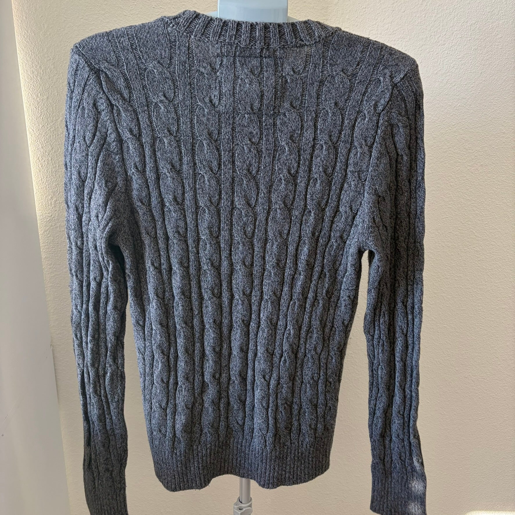 Abercrombie & Fitch Cable-Knit Sweater – Dark Gray Cotton Cashmere Blend, Moose Logo, Size L Muscle Fit