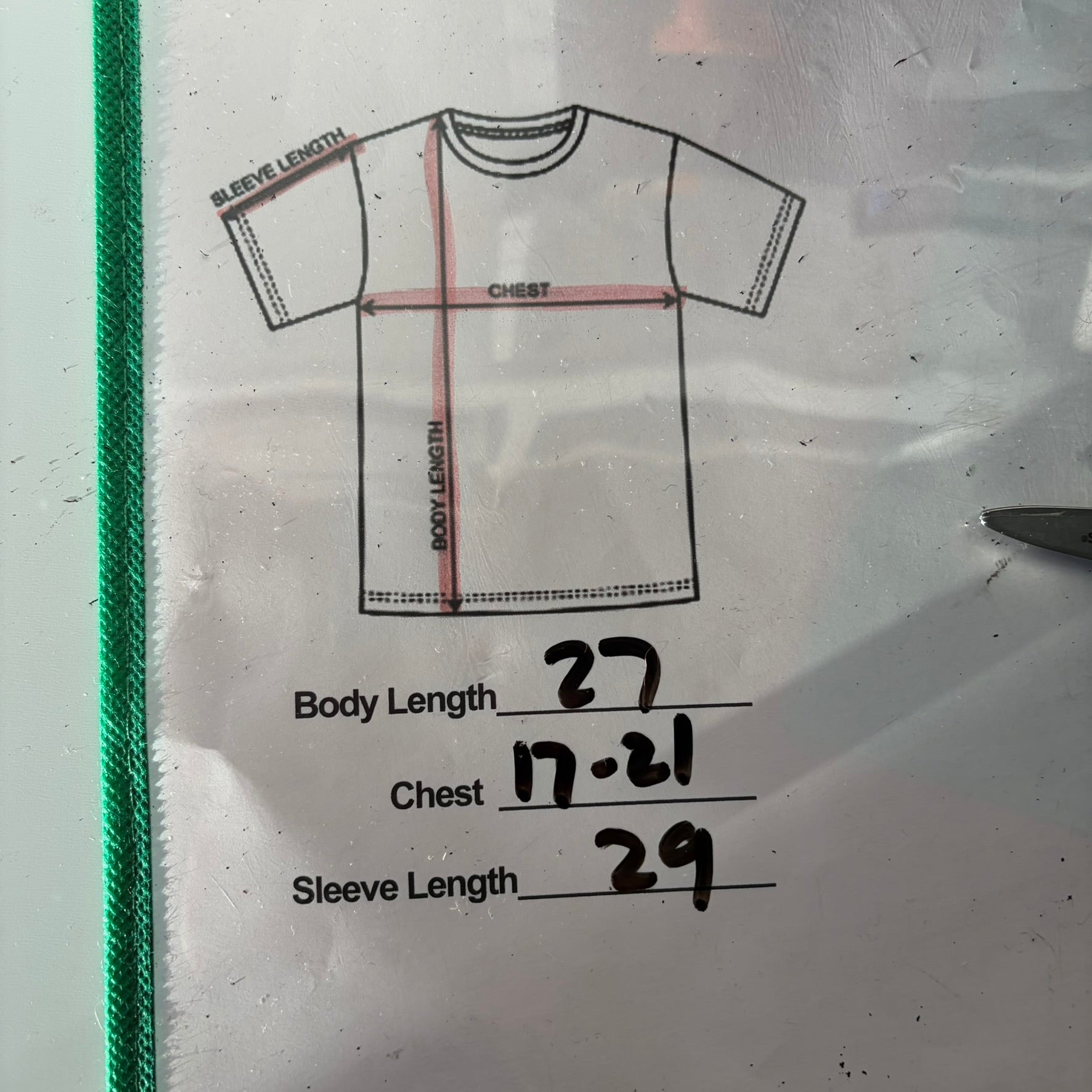 - Fit: Tagged size Large, Muscle Fit. Approximate measurements — Chest: 17–21", Sleeve Length: 29", Body Length: 27".