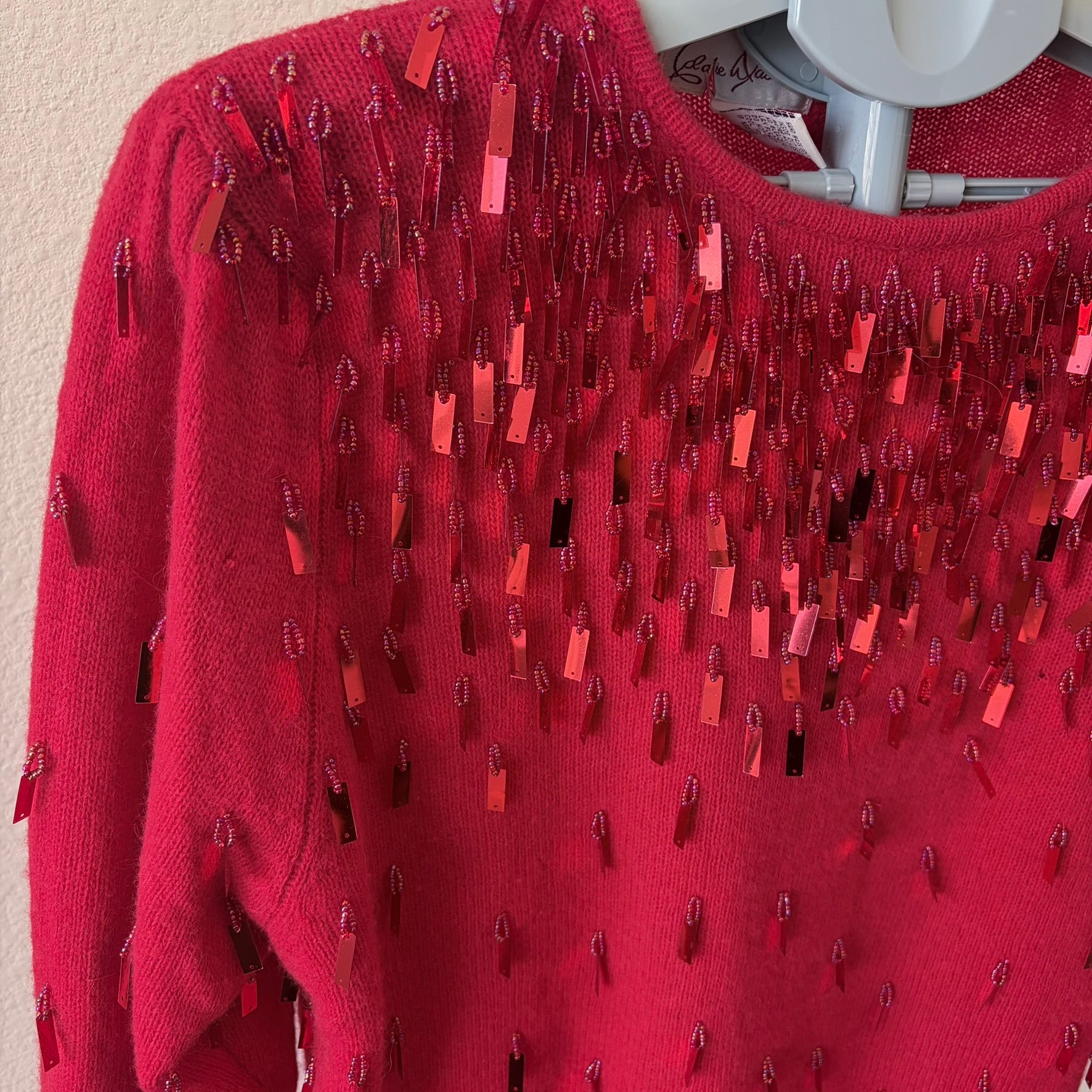 Vtg 80s Red Lambswool Agnora Sequin Sweater LG Eddie Dassin Beaded Holiday Party